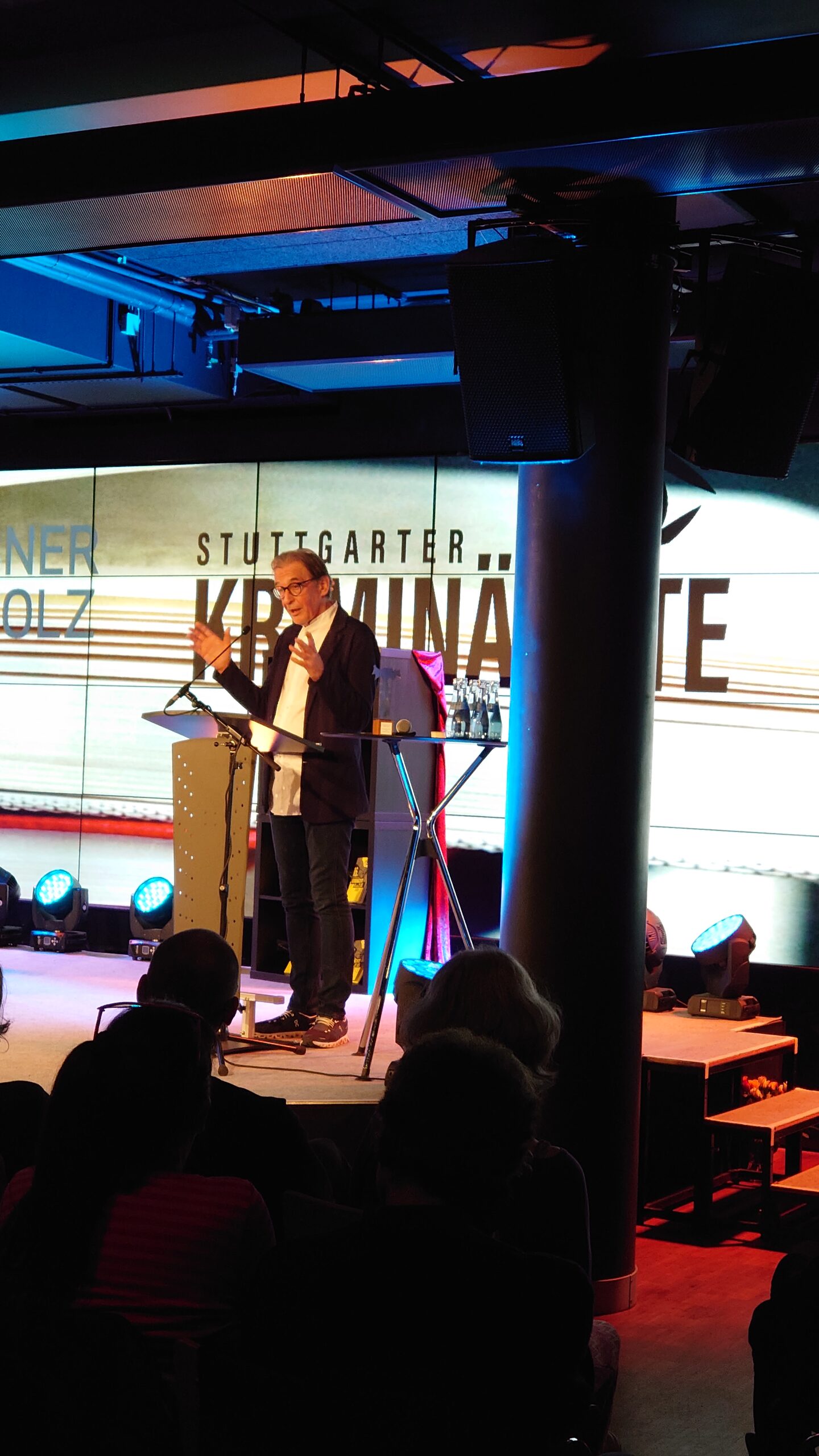 Wolfgang Schorlau ist nicht nur für mich ein alter Bekannter, sondern auch für die Stuttgarter Kriminächte. Nach 2014 und 2018 erhielt er zum dritten Mal den RSM Ebner-Stolz Wirtschaftskrimipreis für „Black Forest“. Er las – ganz gegen die Tradition – im Anschluss an die Preisübergabe keinen Ausschnitt aus seinem Buch, sondern ging auf das ganz besondere Verhältnis von zwei seiner Hauptprotagonist:innen ein: Georg Denglers Mutter zu seinem Sohn Jakob. Das Zusammenspiel der Generationen spielt im Roman eine wichtige Rolle, denn Jakob ist Umweltaktivist und will seine Großmutter von der Wichtigkeit alternativer Energien überzeugen.
