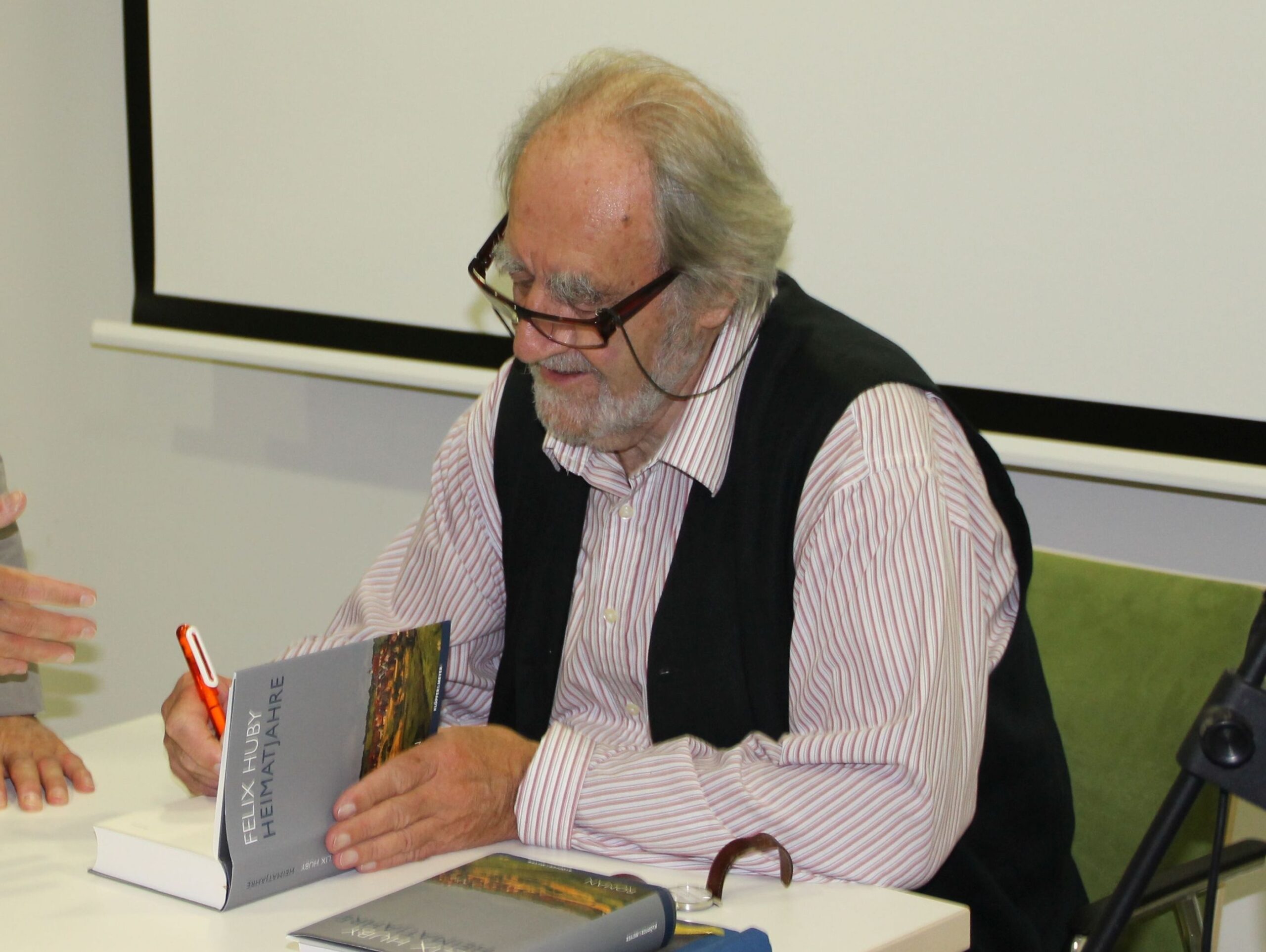 Und diese Lesung, die wir dann in einer Kooperation mit dem Vaihinger Paritätischen Mehrgenerationenzentrum durchführten ist mir in ganz besonderer Erinnerung: Als Felix Huby den Raum betrat, erfasste er mit einem Blick die Zusammensetzung des Publikums und meinte „hier sind viele ältere Gäste, da stelle ich mein Programm ein wenig um“. Als er zu einer Lesepassage kam, in dem ein Weihnachtslied vorkam, das in den 40er Jahren sehr populär war, murmelten viele Gäste die Textzeilen leise mit – das hat mich damals sehr bewegt. Auch nach der Lesung sprachen viele Gäste untereinander, aber auch beim signieren mit Felix Huby, über ihre Erinnerungen. Ich habe viele schöne Lesungen durchgeführt, aber manche davon waren auf ihre ganz spezielle Weise besonders. Diese gehört auf jeden Fall dazu.