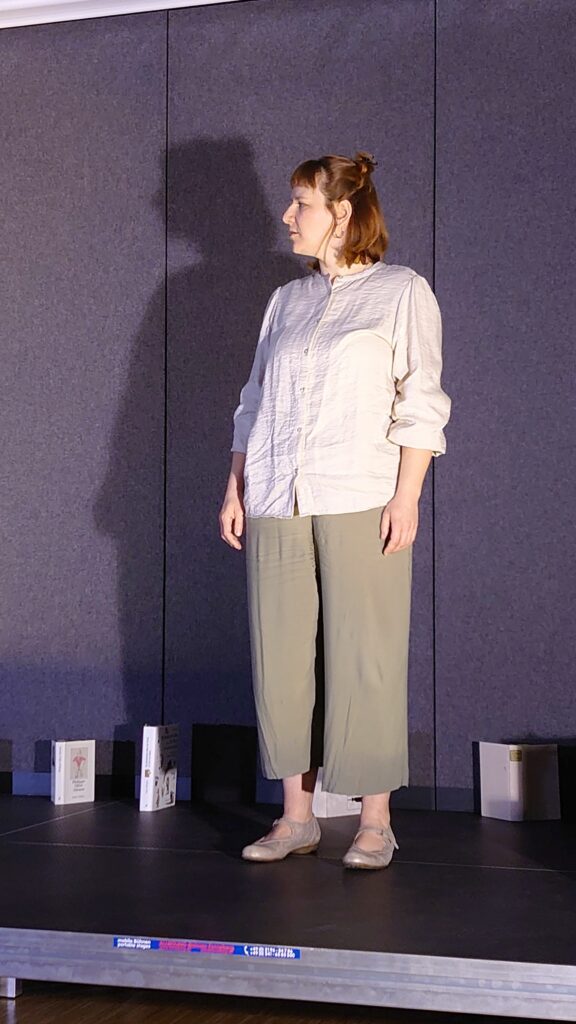 Was sich jetzt so nüchtern liest war eine ergreifende Performance: Auszüge aus Briefen wechselten mit der Rezitation von Gedichten- immer wieder ergänzt durch eine Stimme aus dem off. Durch diese Kombination bekamen manche Gedichte noch einmal eine ganz neue, tiefere Bedeutung. Beispielhaft war für mich das Gedicht „Vogel Klage“, das einen Blick in Hildes Gefühlswelt bietet und gleichzeitig das Ringen um Sprache spürbar macht: „Ein Vogel ohne Füße ist die Klage, kein Ast, keine Hand, kein Nest“ heißt es da und ganz am Schluss: „Ein stummer Vogel, den niemand hört“ (Hilde Domin, Sämtliche Gedichte, S. Fischer Verlag, S. 57)
