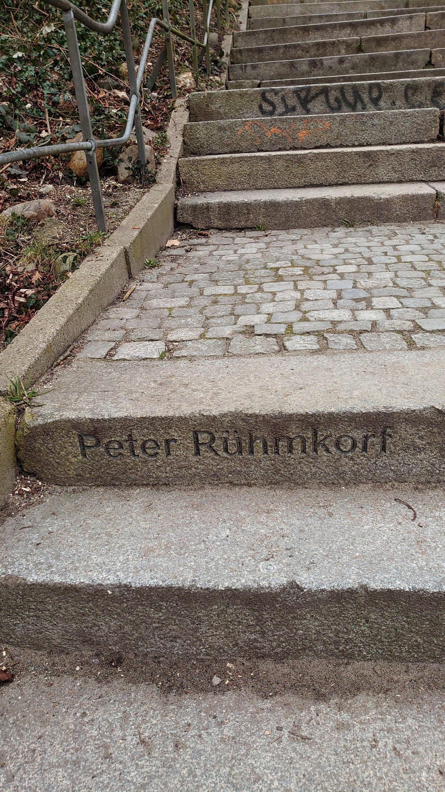 Ringelnatztreppe in Övelgönne mit gewidmeter Stufe für Peter Rühmkorf (© Susanne Martin)