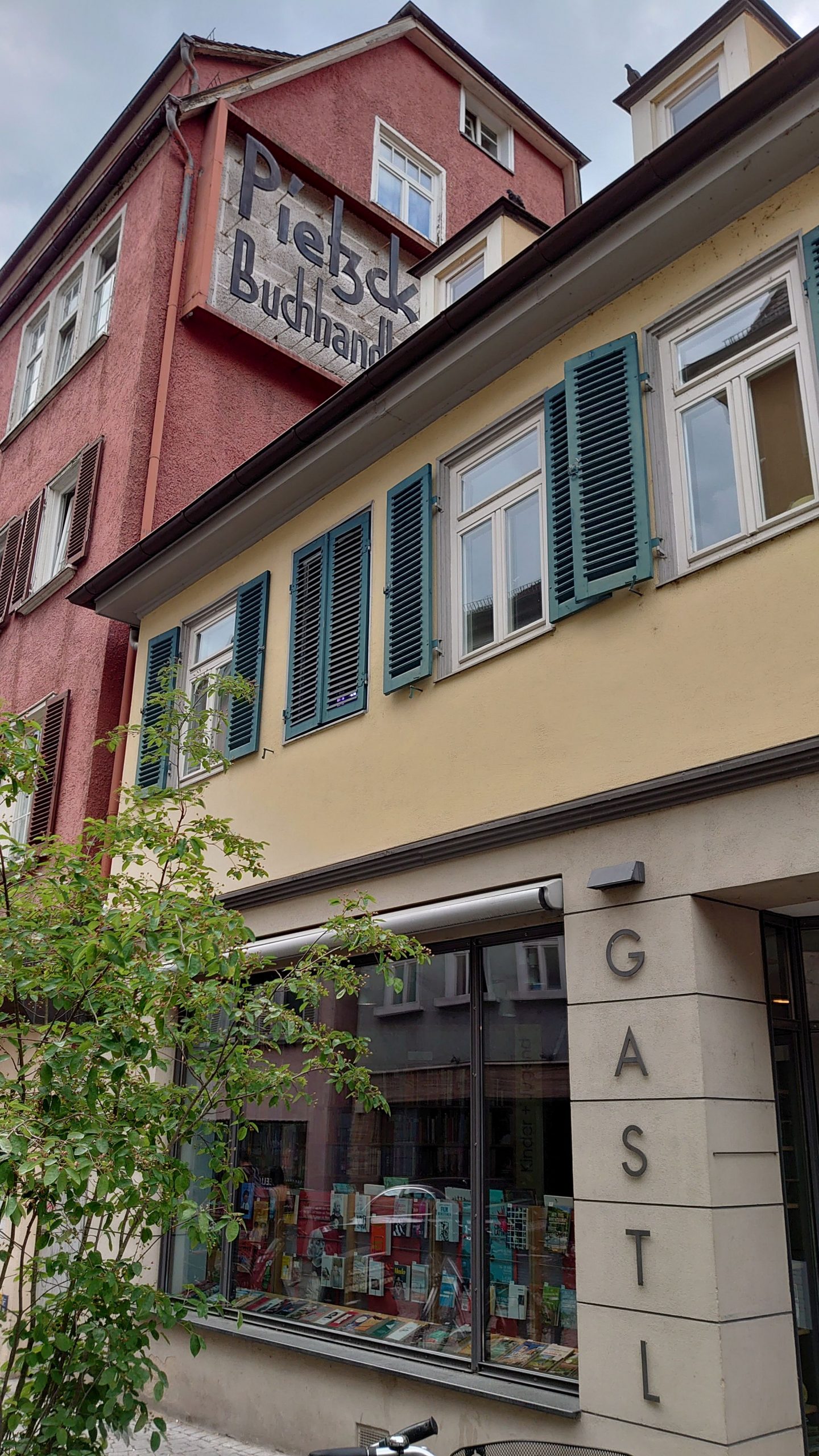 Die Buchhandlung, in der ich fast meine Lehre gemacht habe, die Buchhandlung Gastl, ist mittlerweile am Lustnauer Tor zu finden und im Nebengebäude weist nur noch ein alter Schriftzug darauf hin, daß dort viele Jahrzehnte die seit 2004 geschlossene Buchhandlung Pietzker beheimatet war.