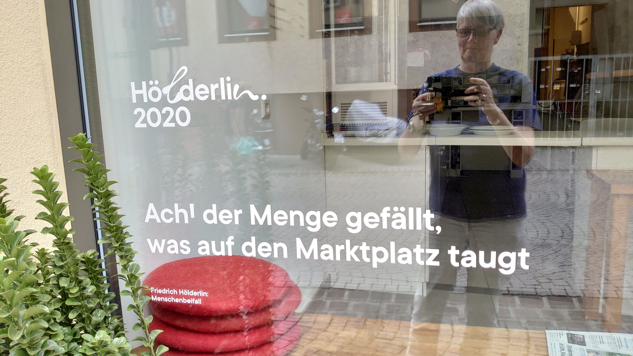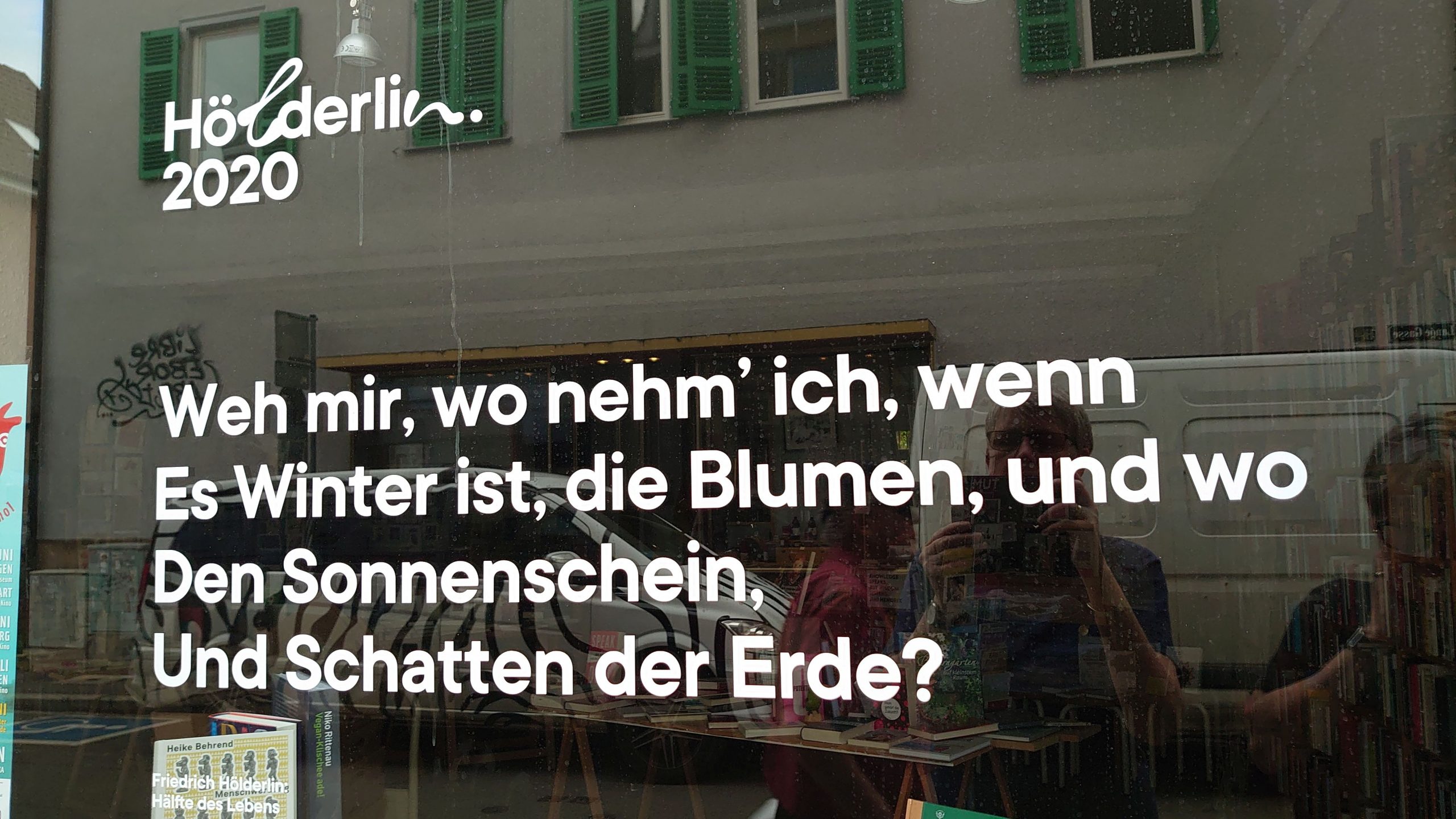Und auch Hölderlin, dessen 250. Geburtstagsfeierlichkeiten größtenteils Corona zum Opfer fielen, war noch präsent – allerdings nicht an den Schaufensterscheiben der Buchhandlungen.